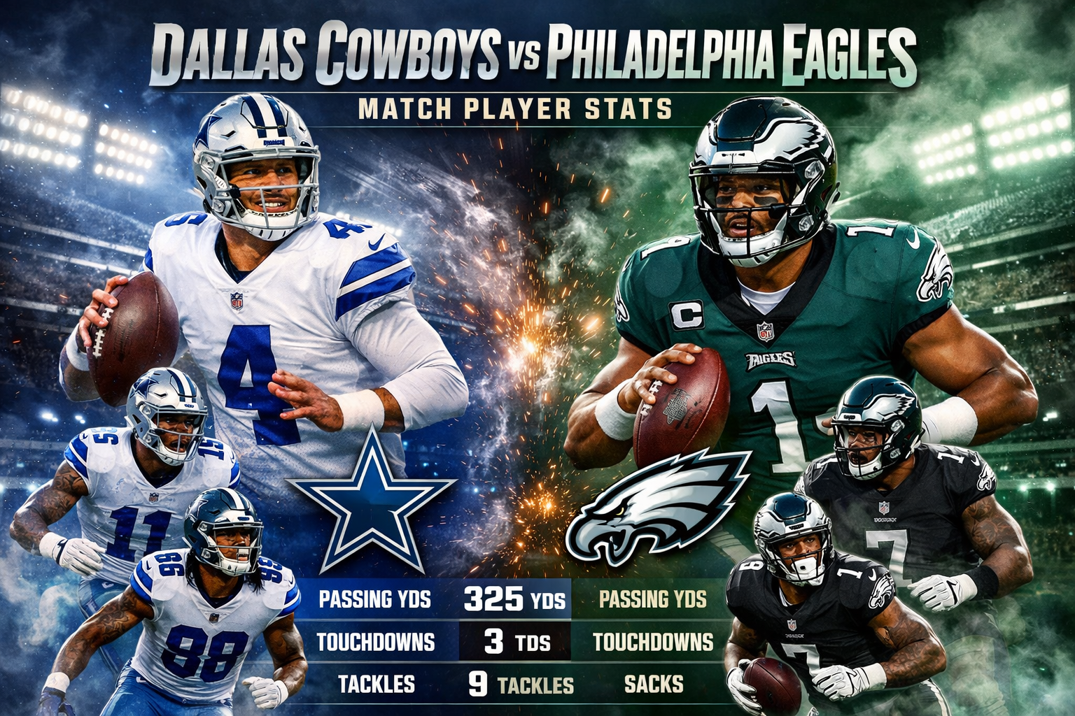 Home » Blog Post » Dallas Cowboys vs Philadelphia Eagles Match Player Stats | Live-Style Recap Tables